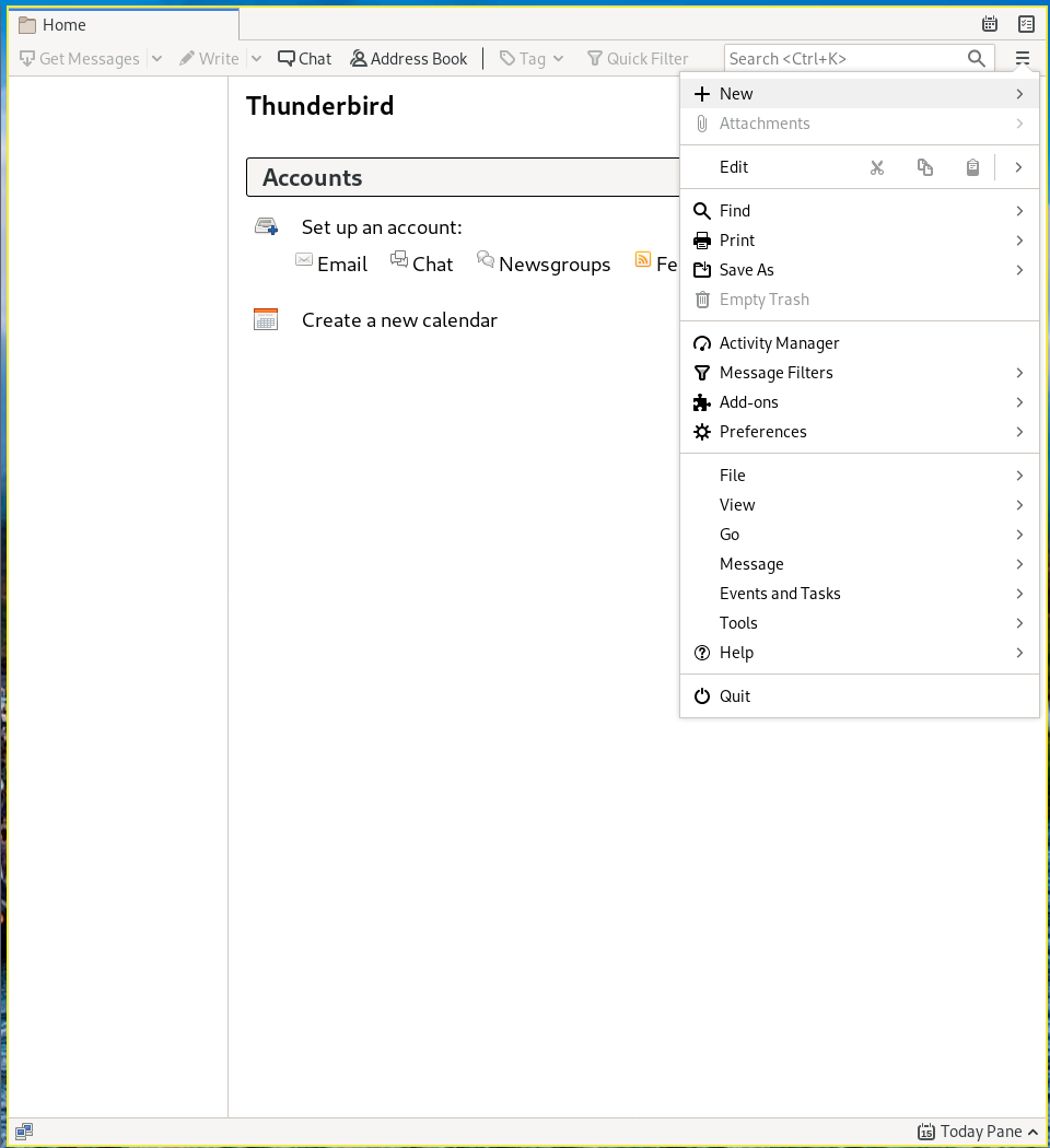 Let us add a new account, click on the main menu, then select New, and then Existing Mail Account...