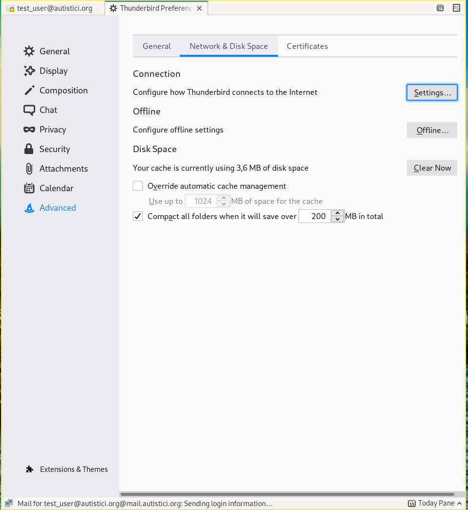 Let’s modify how Thunderbird connects to the server. Rembember that this is a global configuration: every account you have on Thunderbird