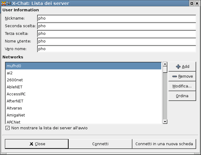 You’ll be presented with a window containing a server list. Click ‘Add’ and replace ‘New Server’ with the name you prefer for your network, such as mufhd0, the name of our network.