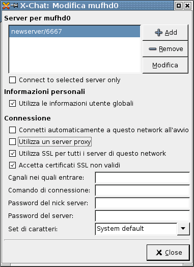 Click ‘Edit’: you’ll see a new window where you can set the IRC network configuration parametres.