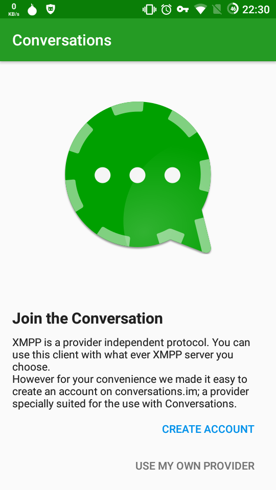 Once it is installed, you can open Conversations: the first screen you will see will be this one:
