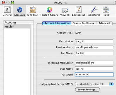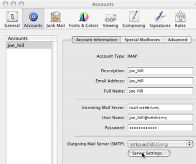 - Make sure that your SMTP server is set to smtp.autistici.org Note for existing mail users: You will need to select “Add Server” from the SMTP pull-down menu.