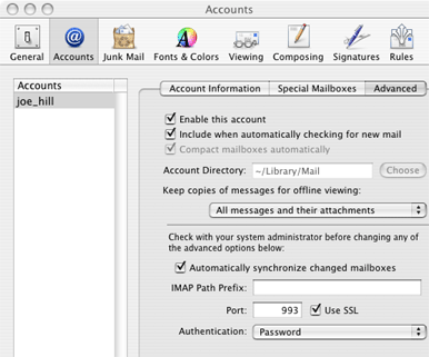 How to configure Mail for OSX to download mail from A/I via IMAP protocol (with SSL support)