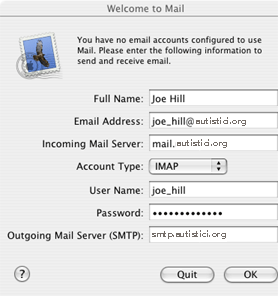 The first time you start mail, a dialog will appear requesting your account information: