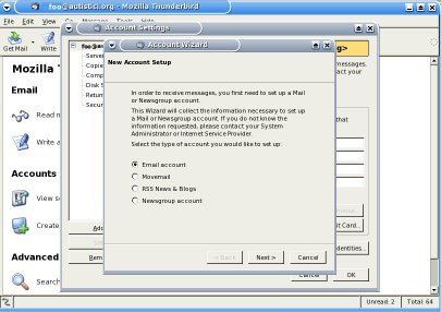 - When the Account Wizard window appears, click on the circle next to Email account, and then click Next.