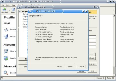 - Review the information that is displayed. If errors appear, click Back to correct them as shown in the previous steps. When done click Finish.