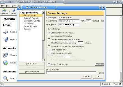 - At the Account Settings screen, in the lefthand window, select the account you’ve just created and click on the plus sign to expand the menu. When the menu is expanded, click on Server Settings, check the box for Use secure connection (SSL) and verify that the Port is listed as “995”.