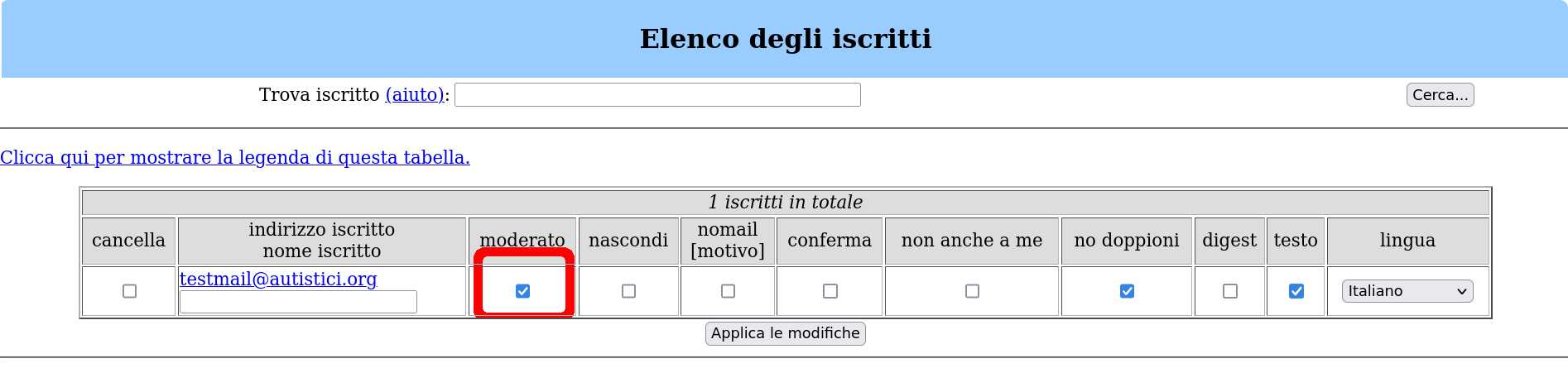 - mod refers to moderated users, so people that not allowed to send messages to the newsletter. Only the authorized people should be not moderated, so for example you should set as not moderated your email address and/or that of other people authorized to send messages. Note: the email of the admin of the newsletter is not automatically authorized to send messages, so even this address should be subscribed to the newsletter and not moderated.