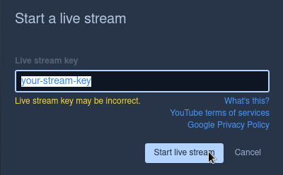 Click “Start live stream”.
